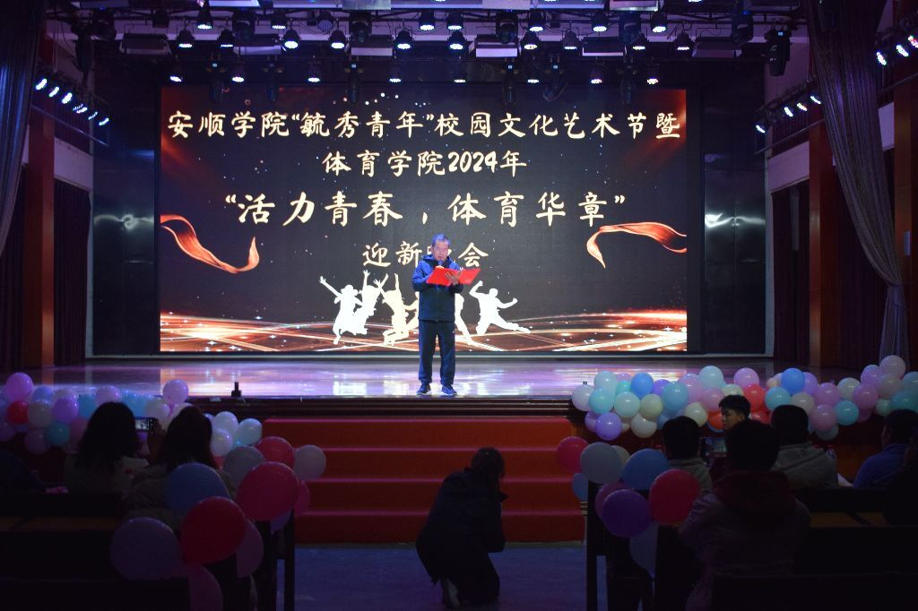 2024年11月18日,体育学院在大礼堂举行“活力青春,体育华章”主题迎新晚会。体育学院党委书记孙黔、大学公共体育教学部副主任刘宁、副院长雷蕾、团总支书记田宇、专职辅导员李磊和全体学生及各学院学生代表参加晚会。