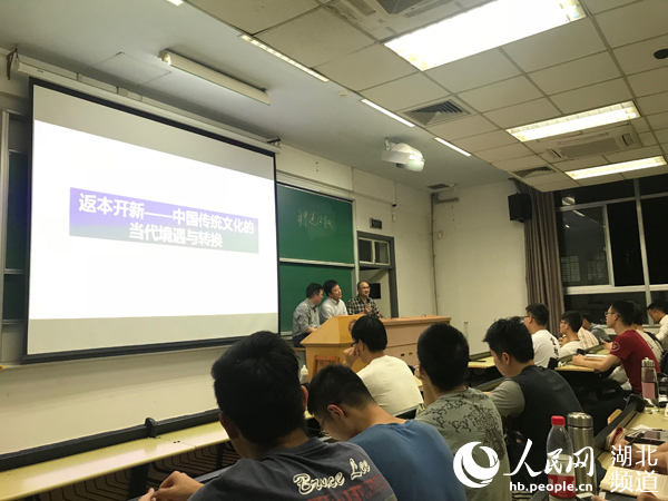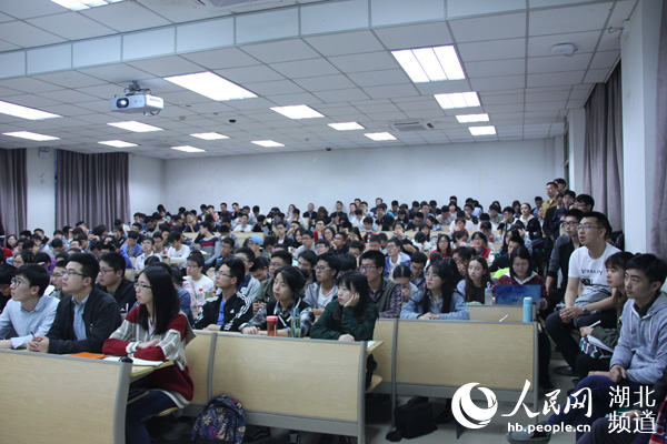 4月23日晚6点,离华中科技大学思想政治公共选修课《深度中国》开讲还有半小时,能容纳200余人的教室已被挤得满满当当。