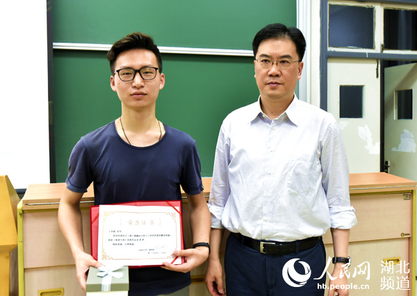 学校党委书记为获奖学生颁奖。(朱必勇 摄)