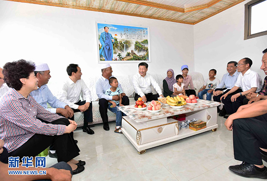 2016年7月18日至20日,中共中央总书记、国家主席、中央军委主席习近平在宁夏调研考察。这是7月19日上午,习近平在银川市永宁县闽宁镇原隆移民村回族移民群众海国宝家中看望。新华社记者李涛 摄