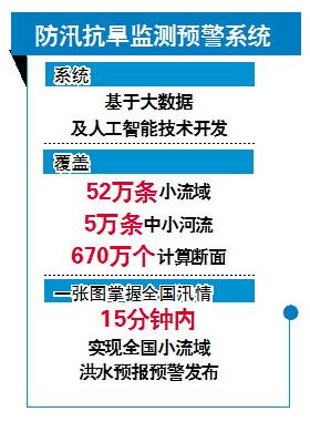 这套基于大数据及人工智能技术开发的系统,共覆盖52万条小流域、5万条中小河流和670万个计算断面,在15分钟内就能实现全国小流域洪水预报预警发布,实现了一张图掌握全国汛情。