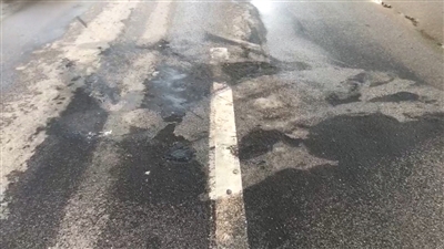 7月6日,新京报记者在追尾事故发生地看到,该路段为南北双向八车道路段,在宝马车起火地点的地面仍有燃烧后的焦炭痕迹。