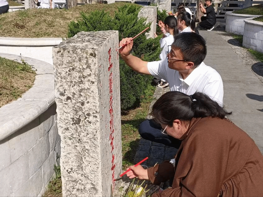 “怕下笔太重,惊扰了烈士的英魂;又怕下笔太轻,描不出他们惊天动地的往昔。”整个过程中,参与的师生严肃认真,通过对墓碑的清洗和一笔一划的描红表达了自己对革命先烈的无限缅怀和追思。(文/图:团委 张丽/宣传部 王键)