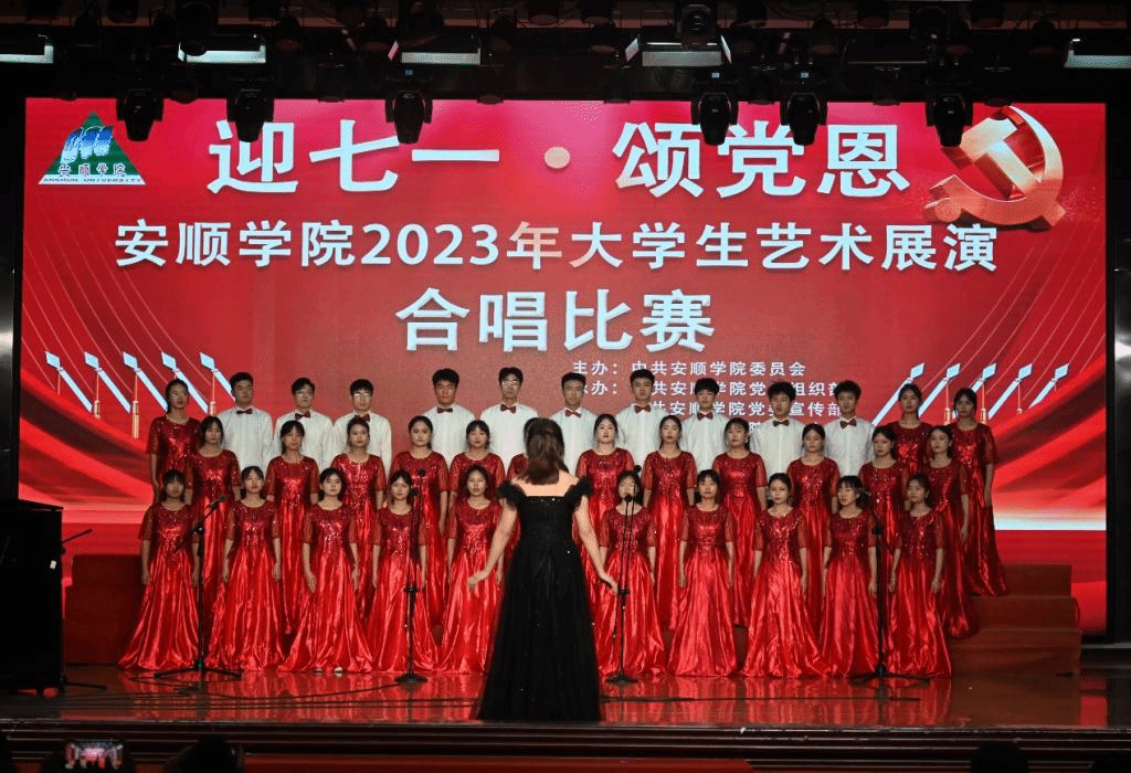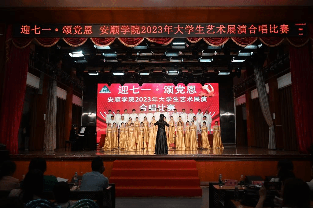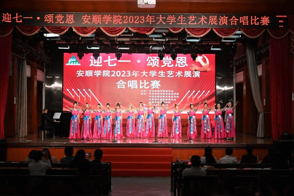 为庆祝建党102周年,进一步深化党史学习教育,表达对党的感激之情,弘扬红色文化,6月16日,由中共安顺学院委员会主办,安顺学院党委组织部、宣传部、团委和艺术学院承办的“迎七一·颂党恩”大学生艺术展演合唱比赛在大礼堂举办。