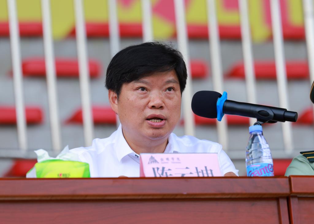 陈云坤作军训总结。他从目标明确、严格实施,实现了军训预期目标;纪律严明、拼搏进取,保证了军训实施质量;传承精神,担当使命,弘扬了军训优良作风三个方面对本次军训工作进行总结。他强调,军训虽然结束了,但人生拼搏的路还很长,并向同学们提出三点期望:第一,志存高远。希望同学们面对国家和民族的重任,始终保持奋斗的精神状态,努力争做新时代的优秀青年。第二,坚持理想。希望同学们学会享受坚持理想的过程,珍惜每一步的收获和成长,从中找到乐趣和满足感,并持之不懈。第三,砥砺前行。希望同学们牢记自身肩负的时代责任和历史使命,通过不断地学习增长知识强化本领,在推进中华民族伟大复兴进程中继续乘风破浪、奋勇前进,谱写出经得起历史和人民检验的精彩篇章。