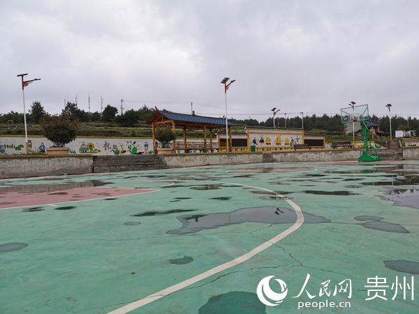建行为新华村捐赠建设的文化广场和篮球场。人民网 王钦 摄