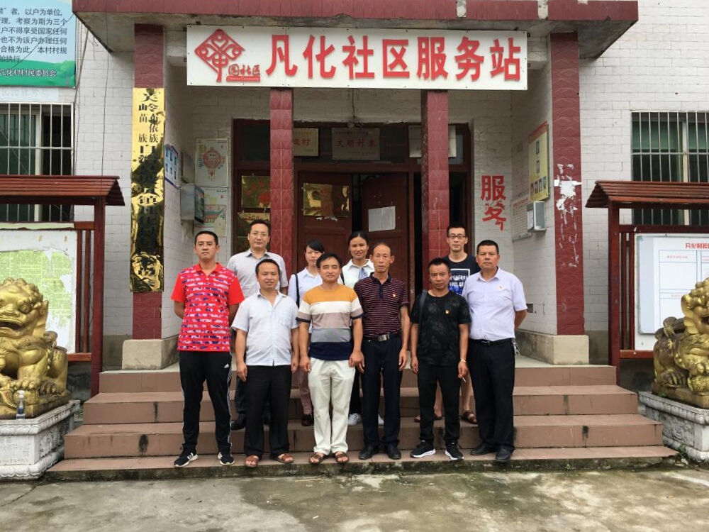 村干部和驻村干部在凡化社区服务站门前合影