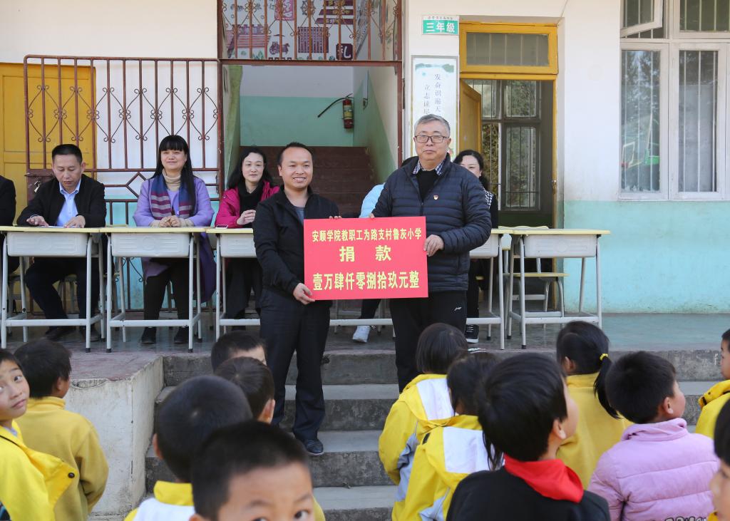 令狐荣涛副校长代表学校向路支村小学捐赠教职工捐款14089元并作讲话。他强调,学校把脱贫攻坚作为重要工作来抓,关爱留守儿童,关爱贫困村民是爱心,更是责任,并要求学校驻村干部强化思想建设,把路支村的扶贫工作抓出实效、抓出特色,坚决打赢脱贫攻坚战。