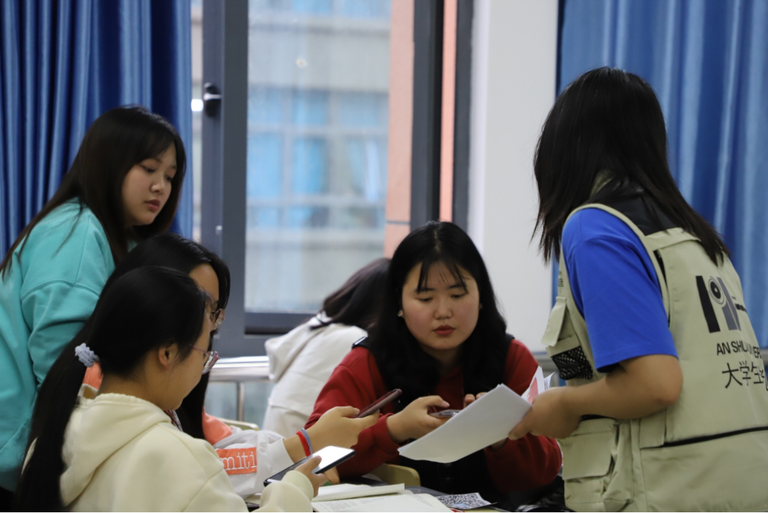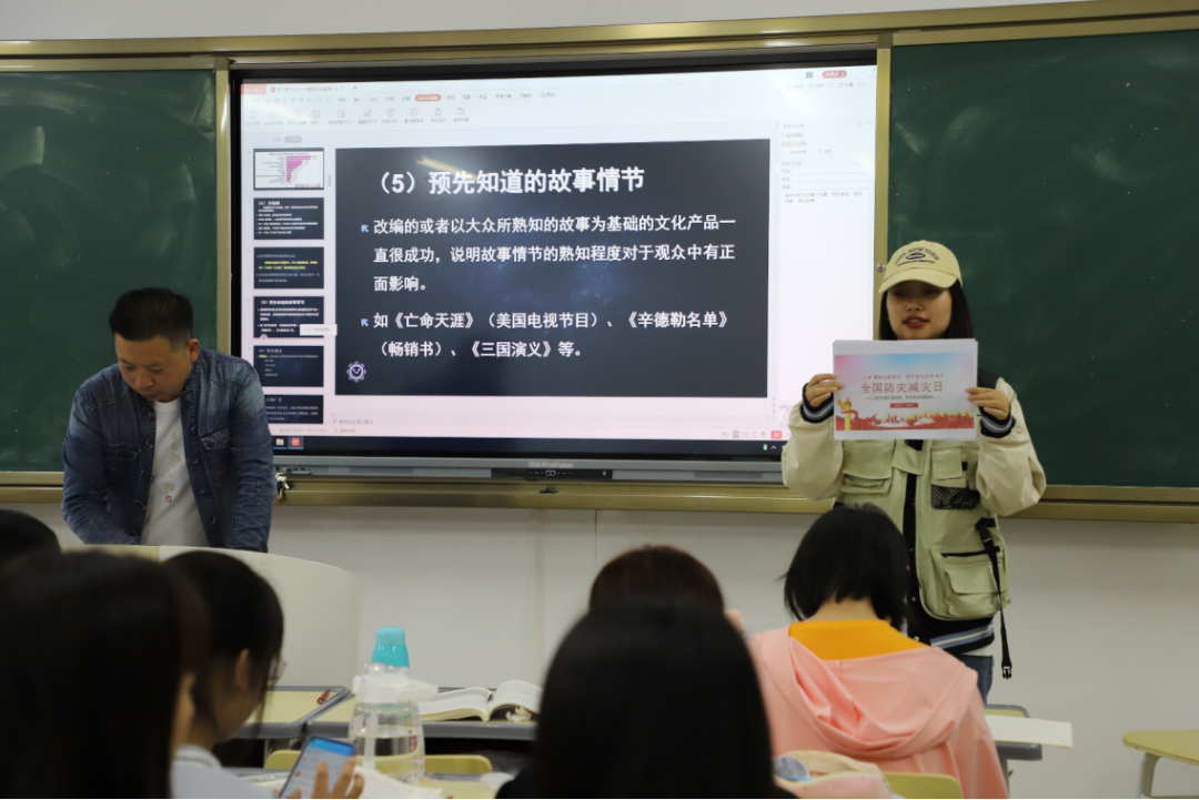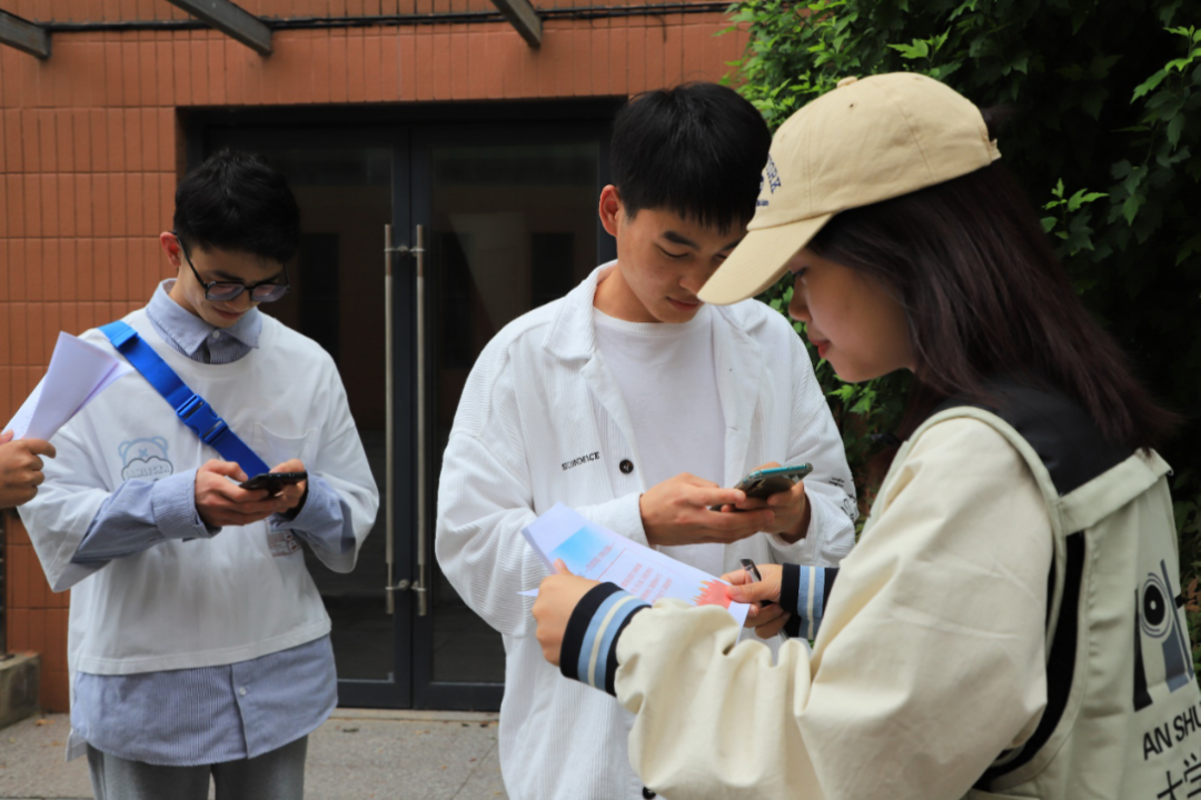 线下宣传活动现场,学生记者在校园内部随机采访师生对于防灾减灾相关知识的认识。在课间,学生记者走入课堂,向师生发放宣传资料并进行全国防灾减灾日主题宣讲,讲解防灾减灾日的由来,增强同学们对于地震、火灾、台风等灾害的防范意识和自救意识。