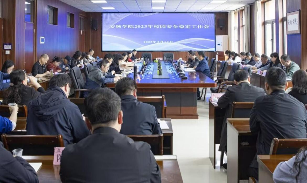 2023年4月12日,安顺学院2023年度校园安全稳定工作会在安道楼505会议室召开。安顺学院党委书记罗荣彬,党委副书记陶文彩,党委委员、副校长殷红敏出席会议,各部门主要负责人,各二级学院党委书记、院长,保卫处全体人员参加会议。会议由陶文彩主持。