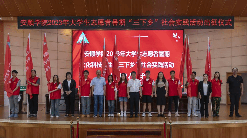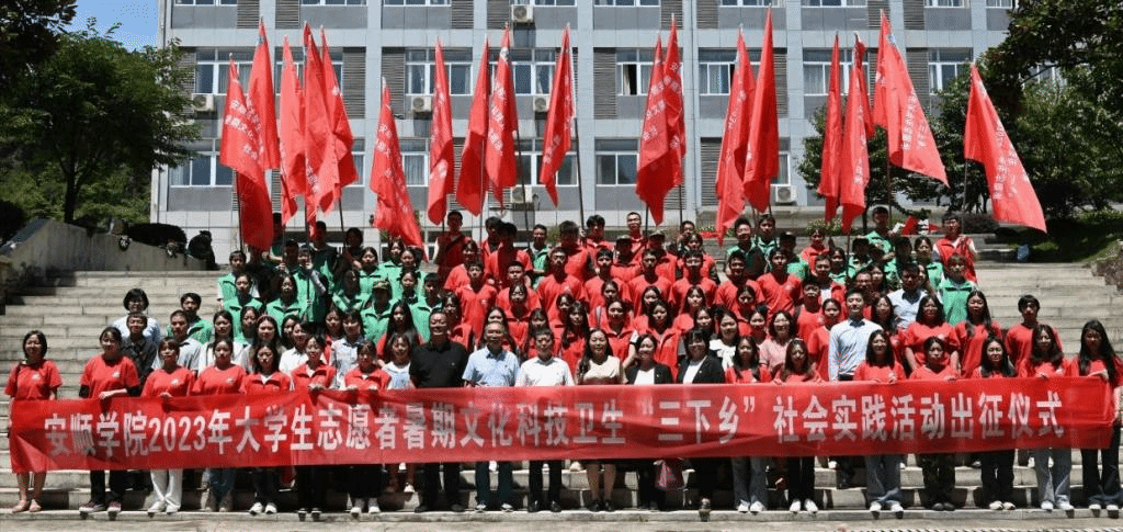 为深入学习贯彻习近平新时代中国特色社会主义思想,引导和帮助广大青年学生在与现实相结合的“大思政课”中“受教育、长才干、作贡献”,引领学生立志做有理想、敢担当、能吃苦、肯奋斗的新时代好青年,培养新时代优秀青年的品格和能力,2023年7月5日,安顺学院举行2023年大学生暑期志愿者文化科技卫生“三下乡”社会实践活动出征仪式。