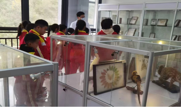 研学团参观化石标本室和生物样本室