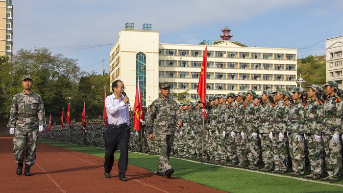 他强调,学校、军分区和承训部队高度重视军训工作,多次召开会议安排、协调军训工作。中国人民解放军西秀区人民武装部派出了素质过硬的教官,优化训练科目安排,既体现科学化又做到从实际出发,既考虑学员身体承受力又做到尽量增加实战因素。在军训中,教官们严爱相济,认真履行职责,精心组织,严格训练。各位班主任老师身在第一线、心系新同学,认真做好学生的思想政治工作。正是有了学校、军分区和承训部队的重视和高标准的要求,有各学院、各连队、各部门的团结协作以及全体承训教官、参训教师和全体参训同学的刻苦训练,才使这次军训顺利进行,并圆满完成各项军训任务。