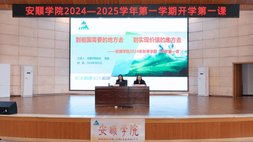 2024年9月5日上午,安顺学院校长曾丽在学术报告厅以“到祖国需要的地方去 到实现价值的地方去”为题,为师生讲授2024年秋季学期“开学第一课”。授课由安顺学院党委委员、副校长殷红敏主持。全校各二级学院师生代表700余人聆听学习。