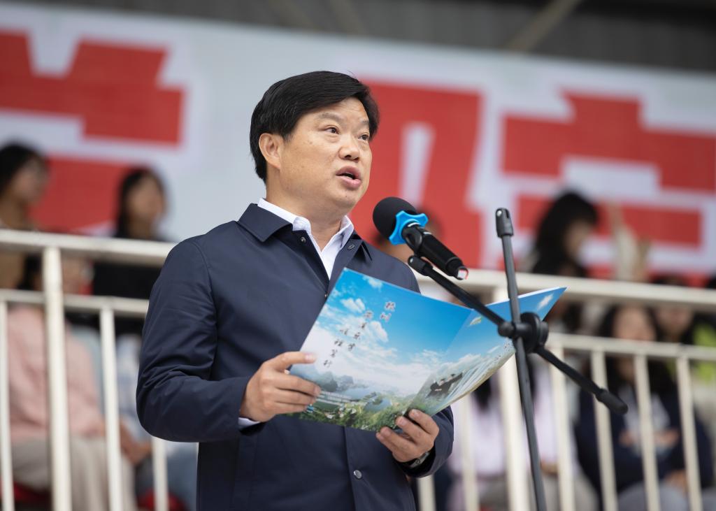 安顺学院党委书记罗荣彬宣布运动会开幕