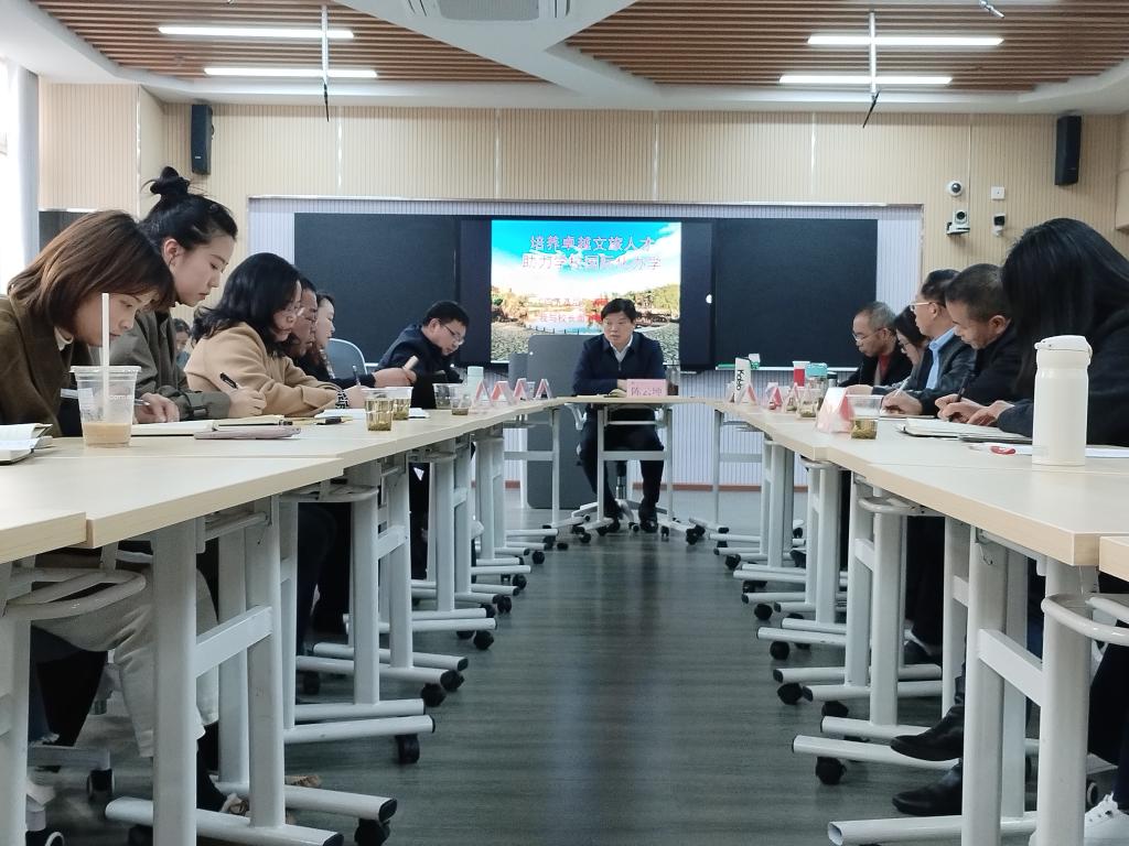 2023年11月23日下午,安顺学院在特教楼502室开展“培养卓越文旅人才、助力国际化办学”的“四下基层调研”------我与校长面对面活动。安顺学院党委副书记、校长陈云坤,党政办、组织部、计财处、资助中心、团委、学工部、教务处、旅游学院和外国语学院负责人,2022级国际酒店管理班同学、2022级国际导游班同学和部分任课教师参会。会议由安顺学院党委委员、党委统战部部长、教务处处长杜志明主持。