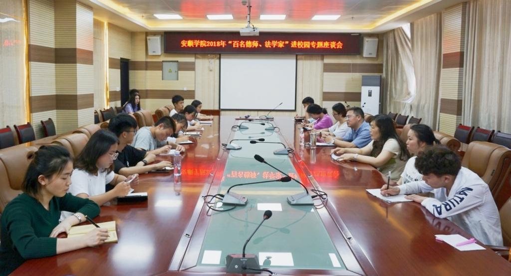 5月21日下午,安顺学院“百名德师、法学家”进校园活动之——“深入学习习近平总书记关于宪法的系列重要论述和深入学习宣传贯彻实施宪法”交流座谈会在特教大楼六楼会议室举行。贵州上运潇荣律师事务所肖仕刚老师与安顺学院各学院学生代表进行座谈交流与互动。座谈交流会由安顺学院党委宣传部部长殷红敏主持。