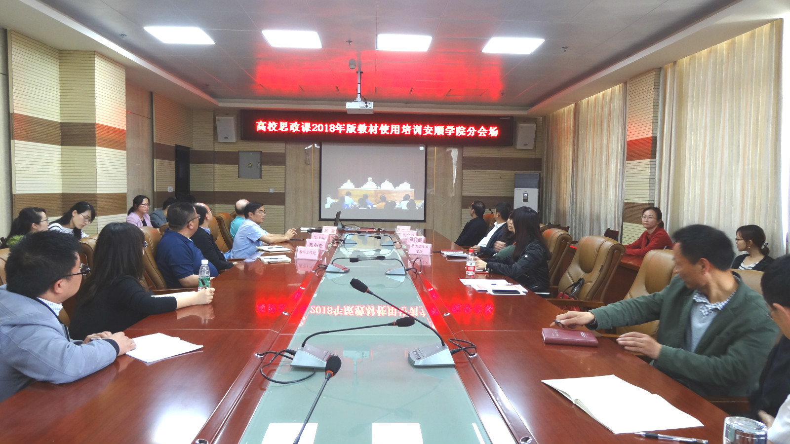 在安顺学院分会场,安顺学院党委书记罗荣彬、院长刘雷、党委副书记陶文彩、副院长王芳恒和宣传部、教务处、教师工作处相关负责同志出席,并与全校思政课教师共同聆听了教育部部长陈宝生同志在开班仪式上的重要讲话。