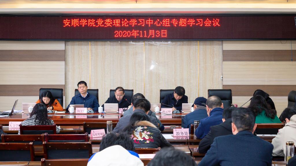 2020年11月3日,安顺学院党委书记罗荣彬主持召开安顺学院党委理论学习中心组专题学习会议,学校领导班子成员,各职能部门主要负责人、各二级党委书记参加学习。