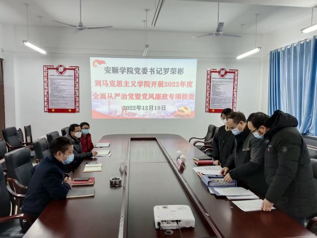 12月19日,安顺学院党委书记罗荣彬到马克思主义学院开展全面从严治党暨2022年度党风廉政建设情况专项检查工作。