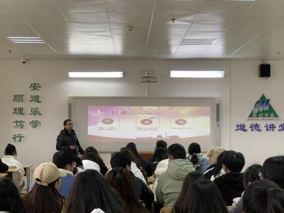 为引导同学们加深对党的二十大精神的了解以及践行,鼓励同学们在新时代做好新青年。2023年12月1日下午,安顺学院道德讲堂开展“学习宣传贯彻党的二十大精神,做好新时代好青年”专题讲座。安顺学院马克思主义学院党委副书记潘光才主讲,马克思主义学院学生现场聆听学习。