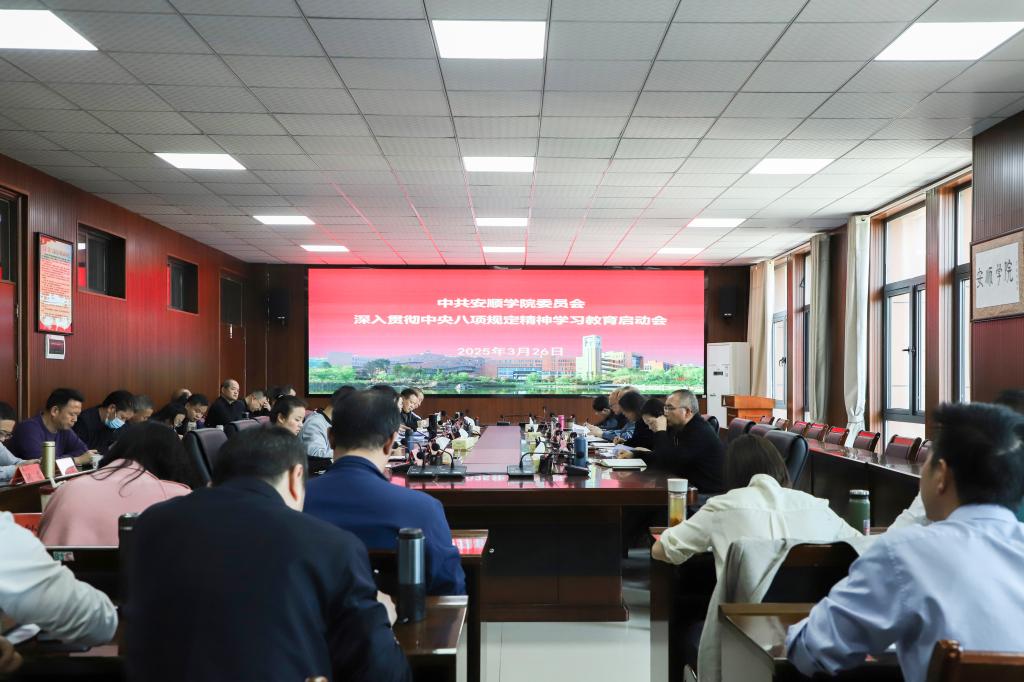 3月26日下午,安顺学院在安道楼第一会议室召开深入贯彻中央八项规定精神学习教育启动会。安顺学院党委书记程绪权主持会议并讲话。安顺学院校领导、各二级党委书记,各部门负责人参加启动会。
