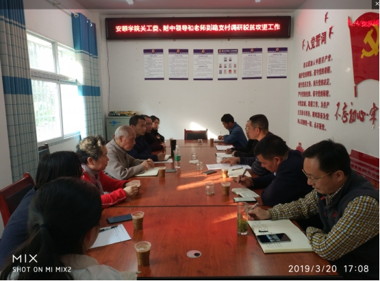 2019年3月20日下午,安顺学院附中党委书记、原驻村第一书记陈宇、关工委常务副主任杨通帮等领导、老师到路支村看望贫困户和驻村干部,并贫困户送去扶贫物资。