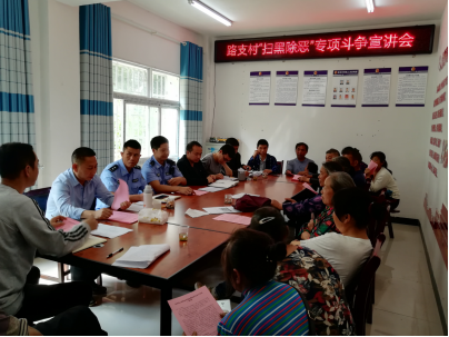 2019年4月22日晚,路支村组织召开村民代表会议,学习宣传“扫黑除恶”相关政策。村民代表30余人、驻村第一书记、同步小康驻村工作组成员、各网格员及村支“两委”成员参与。