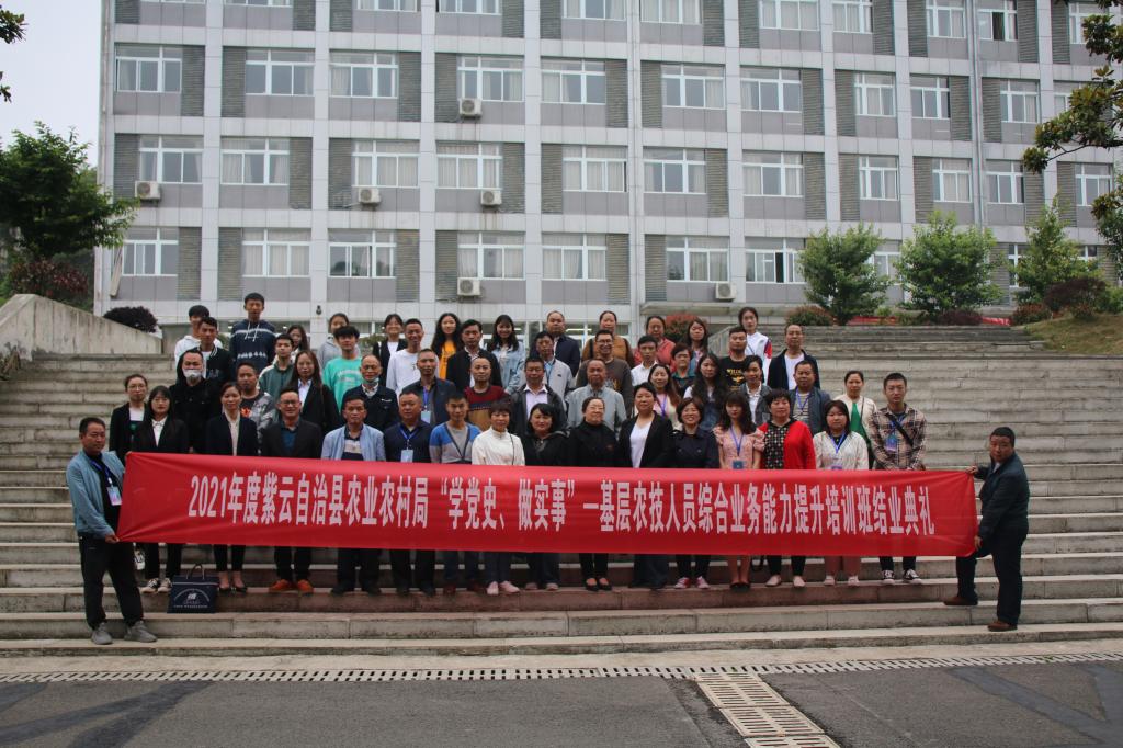 结业典礼上,表彰了5名优秀学员,颁发了2021年紫云自治县农技推广队伍综合业务能力提升培训学员结业证书。