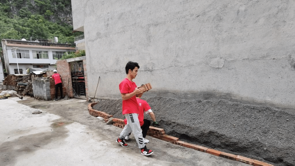 实践队成员协助村民对屋前卫生整理