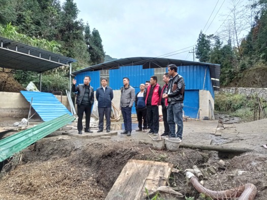 安顺学院党委副书记陶文彩(右三)一行实地查看路支村养牛场