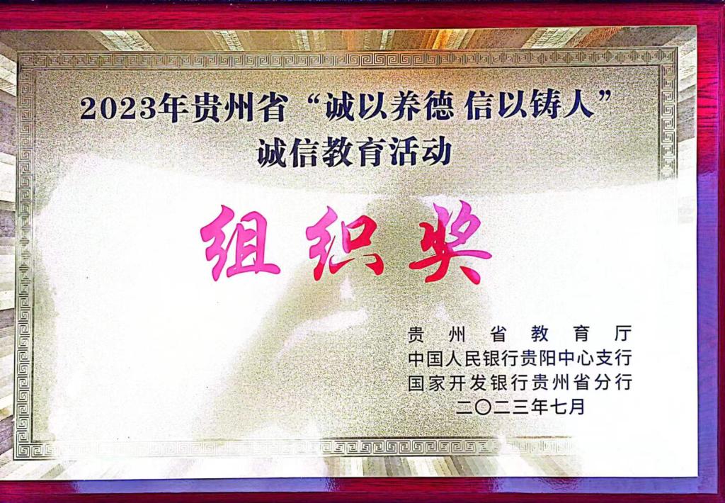 安顺学院荣获2023年贵州省“诚以养德 信以铸人”诚信教育活动组织奖