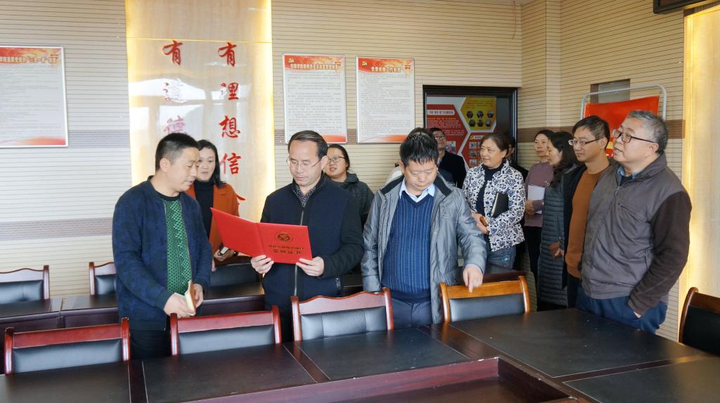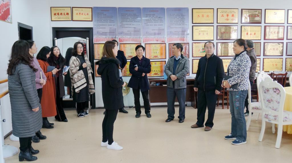 在教科院教师党支部党员活动室检查迎检准备情况