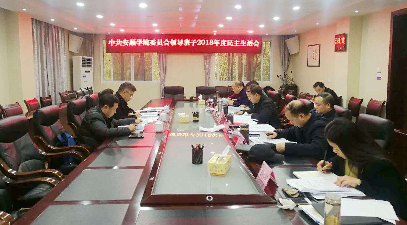 1月28日,安顺学院党委召开2018年度党委领导班子民主生活会,会议紧紧围绕强化创新理论武装,树牢“四个意识”,坚定“四个自信”,坚决做到“两个维护”,勇于担当作为,以求真务实作风把党中央、省委和市委各项决策部署落到实处的主题开展民主生活会。安顺学院党委书记罗荣彬同志主持会议并作总结讲话。党委副书记、校长吴次南同志,党委副书记陶文彩同志,党委委员、副校长顾名宇同志,党委委员、副校长郭本华同志,党委委员、纪委书记蔡红英同志,副厅级领导干部熊国敏同志参加会议。党政办、组织部、宣传部有关同志列席会议,市委组织部部务委员田汝信同志、市委教育工委专职副书记、市教育局党组成员王永兵同志、市委教育工委办公室罗世龙同志到会指导。