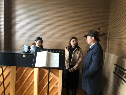 吴次南校长先后到艺术学院音乐楼教室及琴房、特教楼琴房等地查看了硬件设施配备情况,听取了罗文帝院长的工作汇报,他对调研中发现的问题和艺术学院面临审核评估存在的问题提出相关指导意见,要求艺术学院在硬件、软件、特色上要做好充分准备,确保顺利通过教育部本科教学审核评估。(文/图: 艺术学院 付善莉)