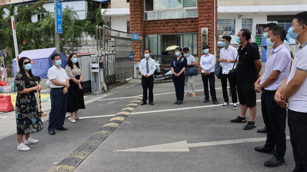 在新学期开学之际,为有效应对复杂严峻的疫情形势,持续巩固我校疫情防控成果,进一步提高防范和应急处置能力,保障广大师生员工生命安全和身体健康,确保新学期教育教学工作有序开展。8月18日上午,安顺学院组织开展疫情防控应急演练。校党委副书记、疫情防控办公室主任陶文彩,党委委员、纪委书记、监察专员蔡红英,党委委员、副校长殷红敏前往演练现场指导工作,疫情防控相关工作组、各相关部门参加了现场演练。