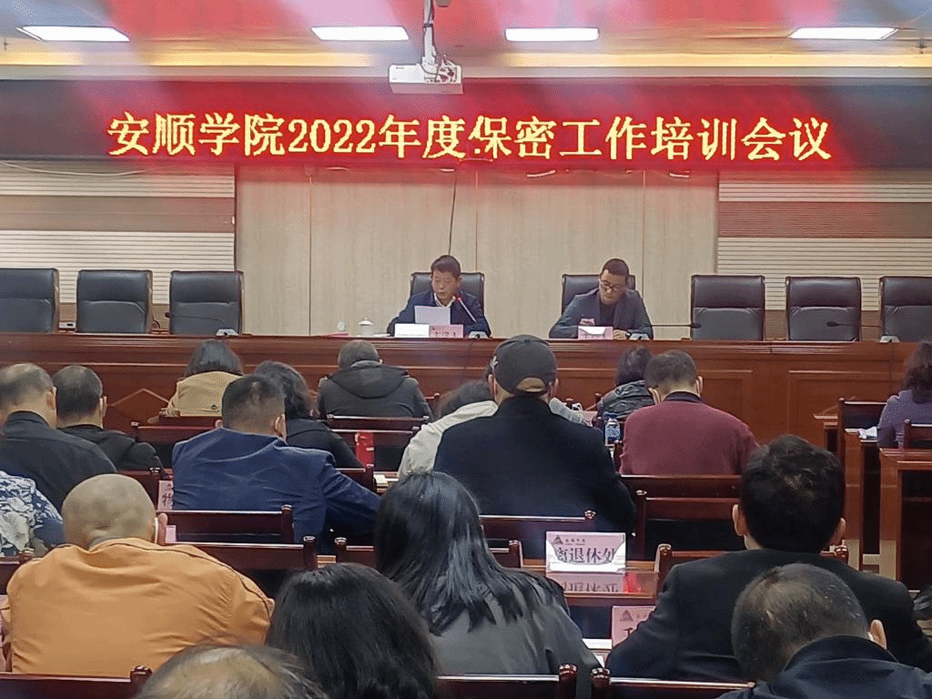 2022年11月21日下午,安顺学院召开2022年度保密工作培训会议,学校党委副书记陶文彩出席,各部门、各学院分管保密工作领导和专职保密工作员参加会议。会议由党政办公室副主任王智勇同志主持。