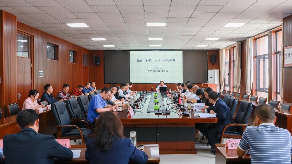 5月24日,安顺学院召开党委理论学习中心组(扩大)专题报告会,邀请贵州省学习贯彻党的二十大精神省委宣讲团成员、贵州省社会科学院党委书记、博士生导师吴大华应邀做题为“教育、科技、人才一体化部署”的专题报告。校领导班子成员及各职能部门负责人,各基层党委书记参加学习。报告会由党委书记罗荣彬主持。