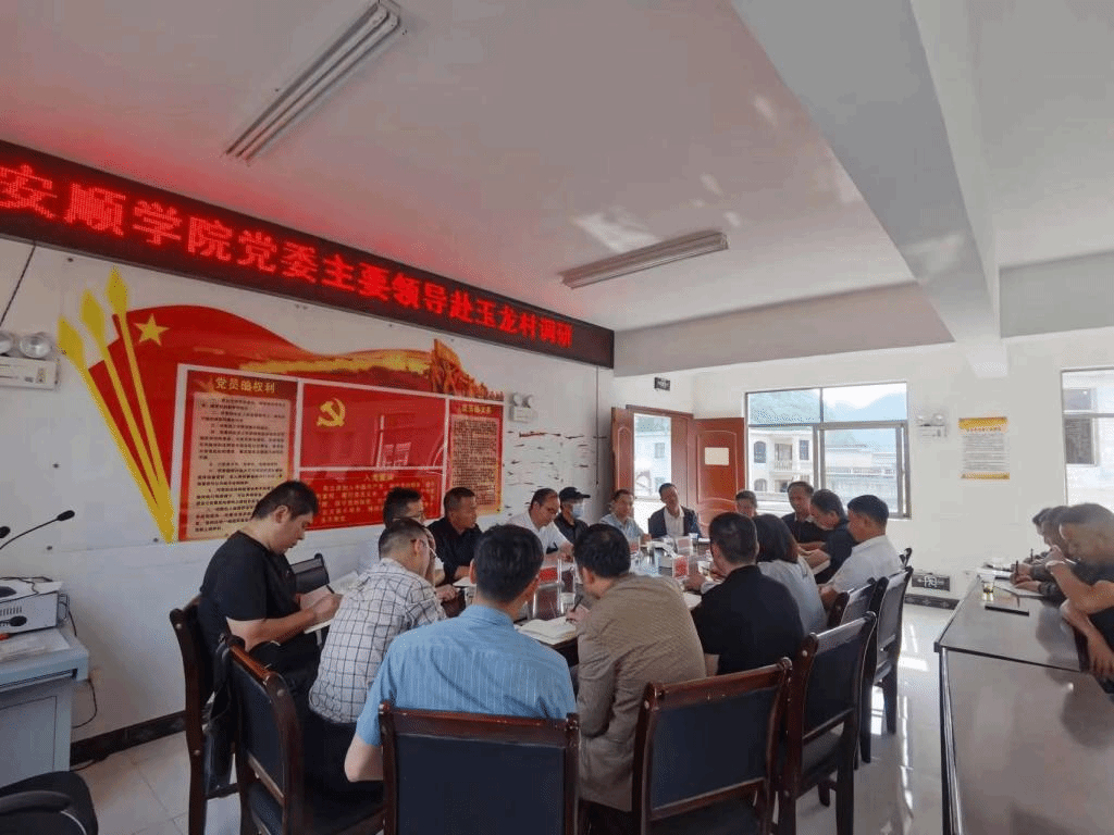 6月13日下午,安顺学院党委书记罗荣彬一行到安顺学院乡村振兴驻村帮扶点清水屯村、玉龙村、孙大关村看望驻村队员,并与村两委成员、驻村第一书记和工作队员、党员代表、群众代表座谈,围绕产业发展、项目规划、乡村振兴和文化教育工作等方面开展调研。安顺学院党委委员、组织部部长何朝越,后勤处处长陈宇、团委书记王旭、科研处副处长张玉涛、党政办副主任翟精武,农学院院长张玉波、艺术学院副院长谢朝玺,以及贵州省高校乡村振兴研究中心社会服务科科长余秋池等陪同参加调研。