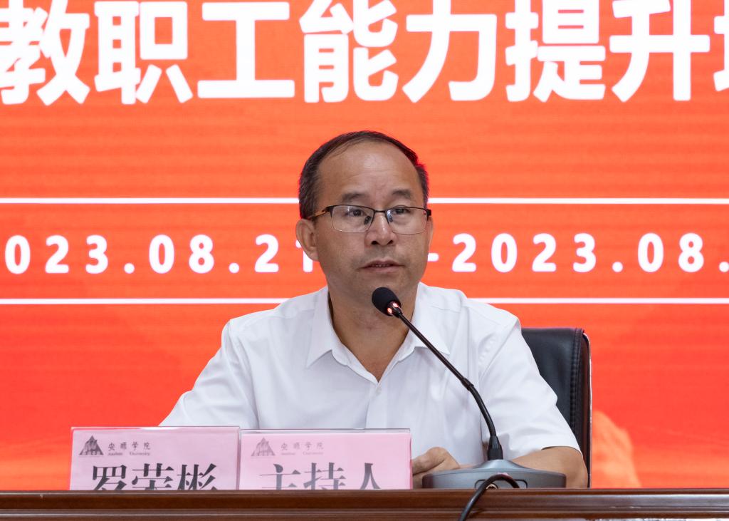 2023年8月21日至25日,安顺学院举办“强师工程”——2023年秋季学期全校教职工能力提升培训班。安顺学院党委书记罗荣彬,党委副书记、校长陈云坤,党委委员、纪委书记、监察专员蔡红英分别进行相关培训。