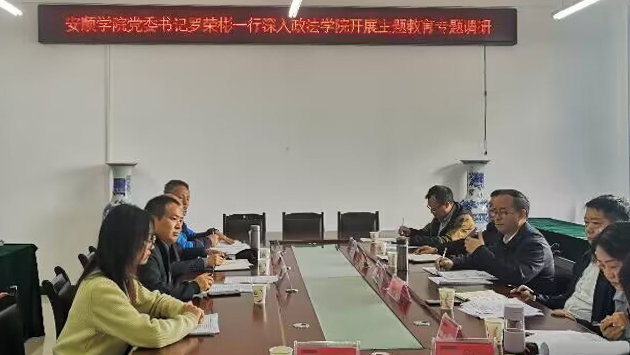 11月6日上午,安顺学院党委书记罗荣彬和党委副书记陶文彩率主题办、党政办、组织部、宣传部、教务处和发规处等部门负责人到政法学院开展学习贯彻习近平新时代中国特色社会主义思想主题教育调研,政法学院领导班子、党支部书记、教师代表和学生代表参加调研座谈。