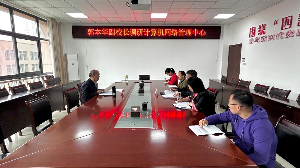 2024年4月12日上午,安顺学院副校长郭本华调研计算机与网络管理中心,并进行座谈交流。计算机与网络管理中心全体工作人员参加座谈,党政办公室李尧睿陪同调研。