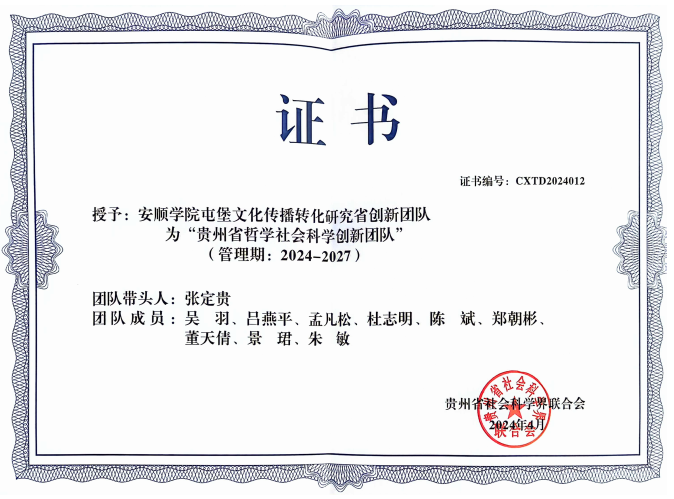 贵州省屯堡文化研究中心荣获“贵州省哲学社会科学创新团队”荣誉称号