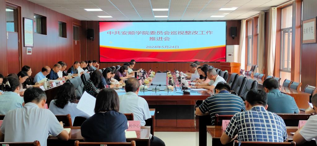 5月24日,安顺学院巡视整改工作推进会在安道楼五楼第一会议室召开。安顺学院党委书记罗荣彬主持会议并讲话。安顺学院校长曾丽,党委副书记陶文彩,党委委员、纪委书记、监察专员蔡红英,党委委员、副校长韦英,党委委员、组织部部长何朝越出席会议。安顺学院巡视整改各牵头部门、责任部门负责人、各基层党委书记、巡视整改办公室全体工作人员参加会议。
