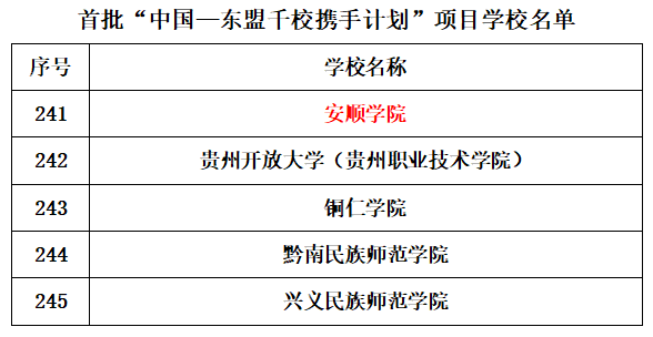 安顺学院荣获首批“中国—东盟千校携手计划”项目