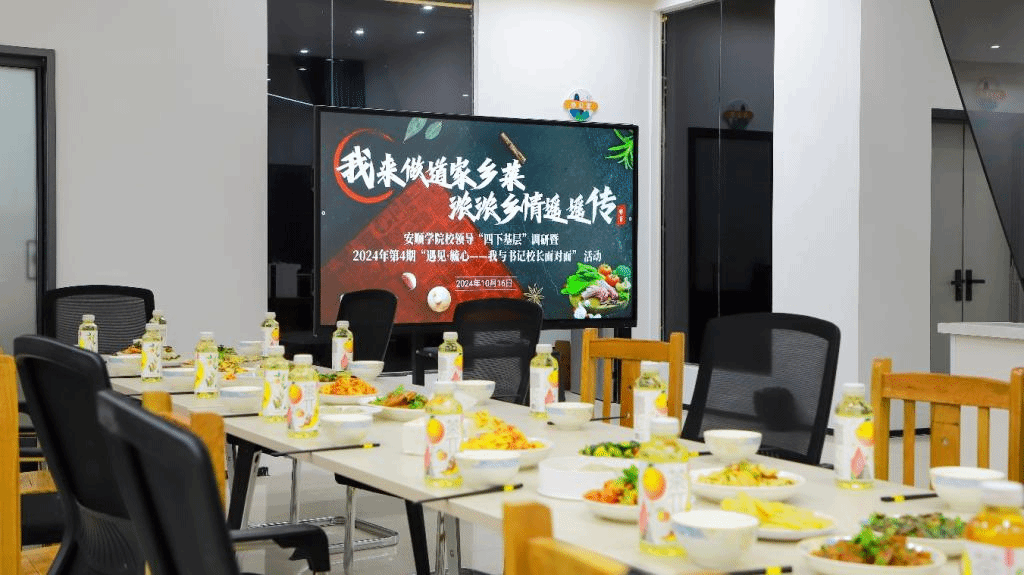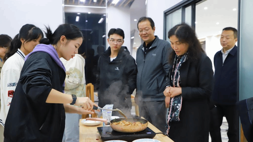 为深入贯彻落实习近平总书记关于教育的重要论述精神,持续践行“四下基层”优良作风,提升学生社区育人实效,10月16日下午,安顺学院在毓秀“一站式”学生社区活动服务中心“共享厨房”开展2024年“一站式”学生社区“最青春”文化节系列活动之校领导“四下基层”调研暨2024年第4期“遇见·毓心——我与书记校长面对面”活动,主题是“我来做道家乡菜,浓浓乡情遥遥传”。安顺学院校长曾丽出席活动,与14名学生代表共同品味劳动的甘甜。