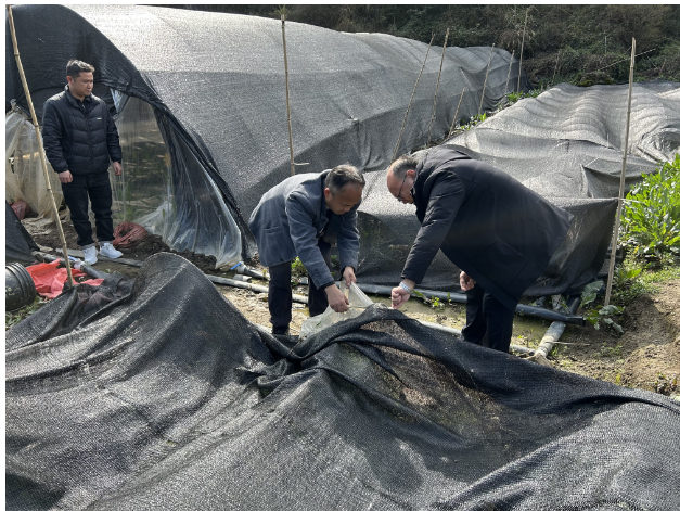 李琳一行先来到清水屯村,清水屯村党支部书记周飞介绍了清水屯村巩固拓展脱贫攻坚成果、乡村振兴、乡村建设、乡村治理、产业发展和村党组织建设等情况,对安顺学院多年来给予清水屯村的帮扶工作和帮扶措施表达感谢,并希望安顺学院在新的一年继续关心和支持清水屯村的乡村振兴和发展建设。我校驻清水屯村驻村第一书记黄元射汇报了驻村工作队近期工作开展情况,以及由其具体负责实施的帮扶项目清水屯羊肚菌种植基地的羊肚菌生长、亩产和销售情况。李琳随后来到该村羊肚菌种植基地查看菌品长势和询问了解有关情况,提出羊肚菌种植应主动对接市场,与技术成熟的羊肚菌种植合作社、基地、公司展开合作,以种植基地示范效应带动更多的脱贫群众和村民增收。