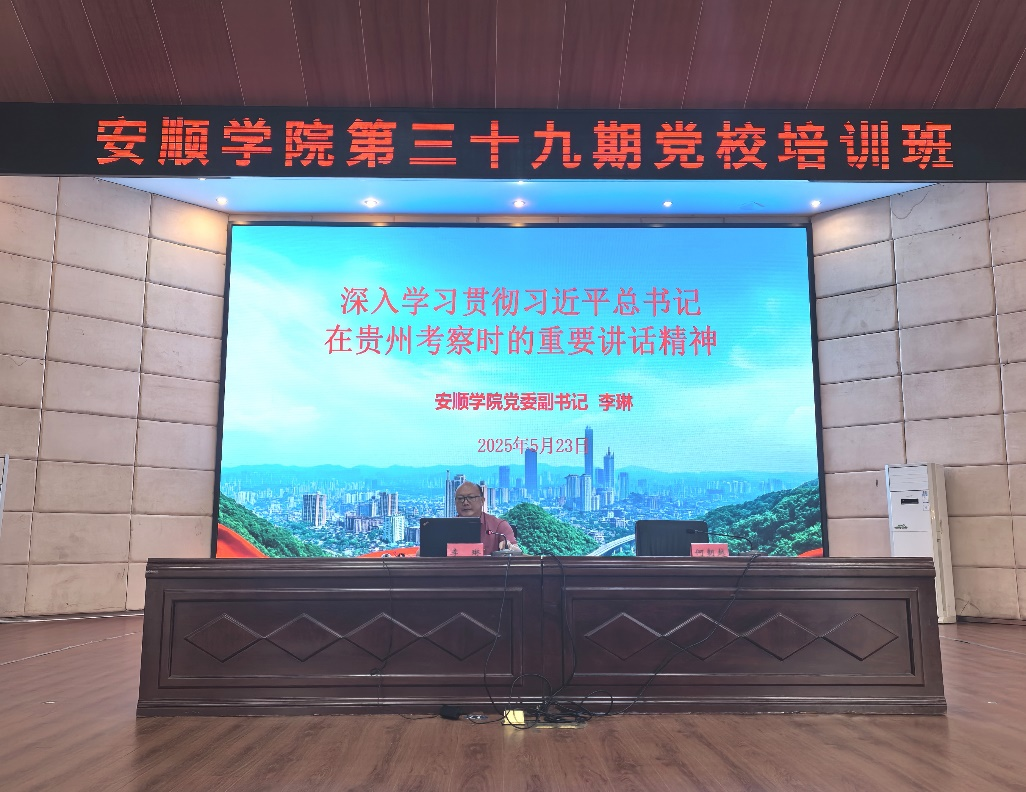 2025年5月23日下午,安顺学院第39期党校培训班在学术报告厅开班。安顺学院党委副书记李琳出席开班仪式,同时为512名入党积极分子和发展对象讲授课程。安顺学院党委委员、党委组织部部长何朝越主持开班仪式。