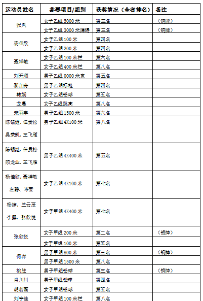 本次赛事由贵州省教育厅、贵州省体育局、共青团贵州省委主办,是对全省学生体育竞技能力的一次全面检阅和集中展示,是强化学校体育、增强学生体质的重要举措。运动会设中小学组和大学生组。我校共5名教练和37名运动员参加大学本科甲、乙组各项赛事,经过激烈角逐我校代表队荣获银牌1枚、铜牌4枚,多人获单项前八名优异成绩和体育道德风尚奖。具体获奖情况如下: