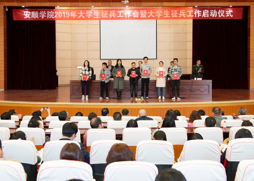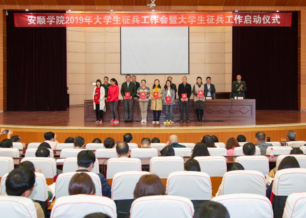 4月8日下午,安顺学院2019年大学生征兵会暨大学生征兵工作启动仪式在学术报告厅举行。安顺学院党委书记罗荣彬、党委副书记陶文彩、副校长令狐荣涛、安顺军分区动员处处长江波、西秀区人武部政委杨蓟出席会议。各二级学院党委书记、院长、副书记,学生科科长、副科长,全体辅导员、班主任;各职能部门主要负责人;学生处(学工部、武装部)、教务处、保卫处、资助管理中心全体同志参加会议。会议由副校长令狐荣涛主持。